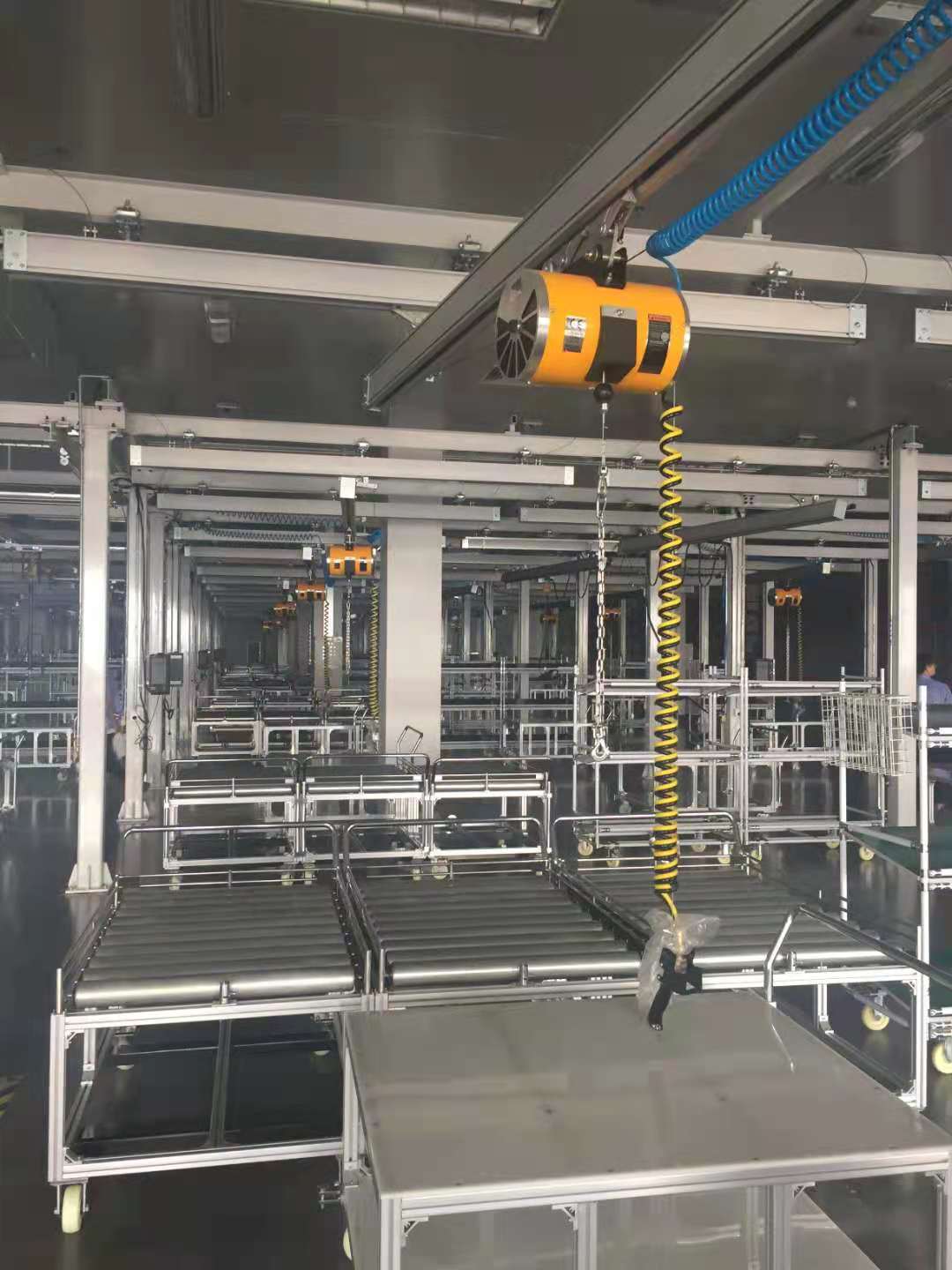 鋁合金軌道配智能提升機(jī)應(yīng)用在某外企裝配區(qū)鋁合金軌道起重機(jī),是一種主要應(yīng)用鋁合金行走軌道及滑車,用碳鋼做結(jié)構(gòu)支撐或配件,鋁合金與碳鋼組合的一種新型輕載起重設(shè)備。