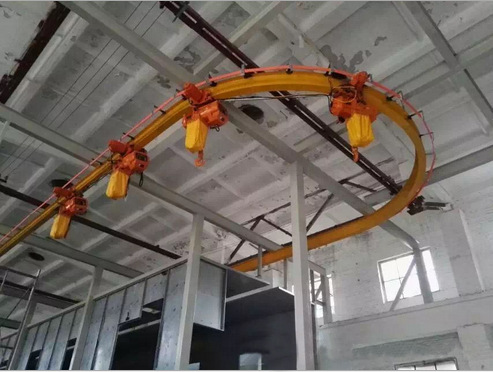 6、多軌道懸掛,覆蓋更大的倉(cāng)儲(chǔ)及生產(chǎn)區(qū)域,起重機(jī)可以輕松地用手移動(dòng)。