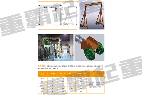 1、滿足中、小工廠(公司)日常生產(chǎn)需要搬運設(shè)備、倉庫進(jìn)出貨,起吊維修重型設(shè)備及材料運輸。